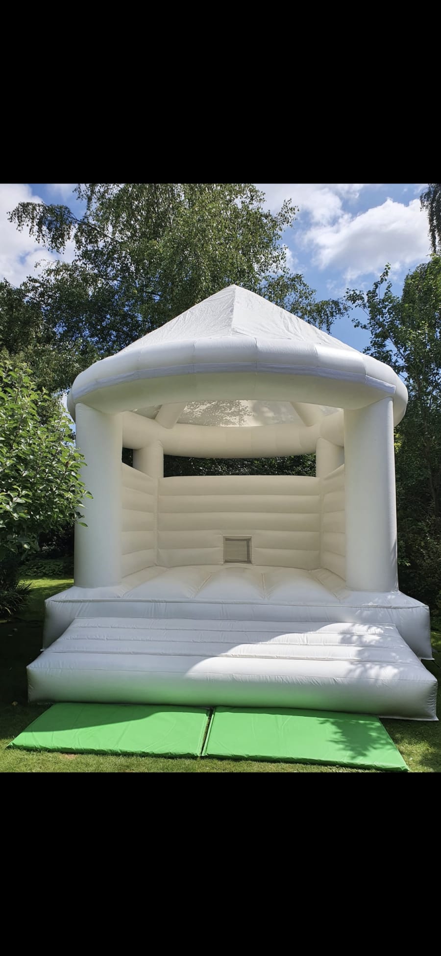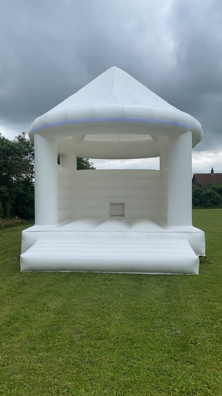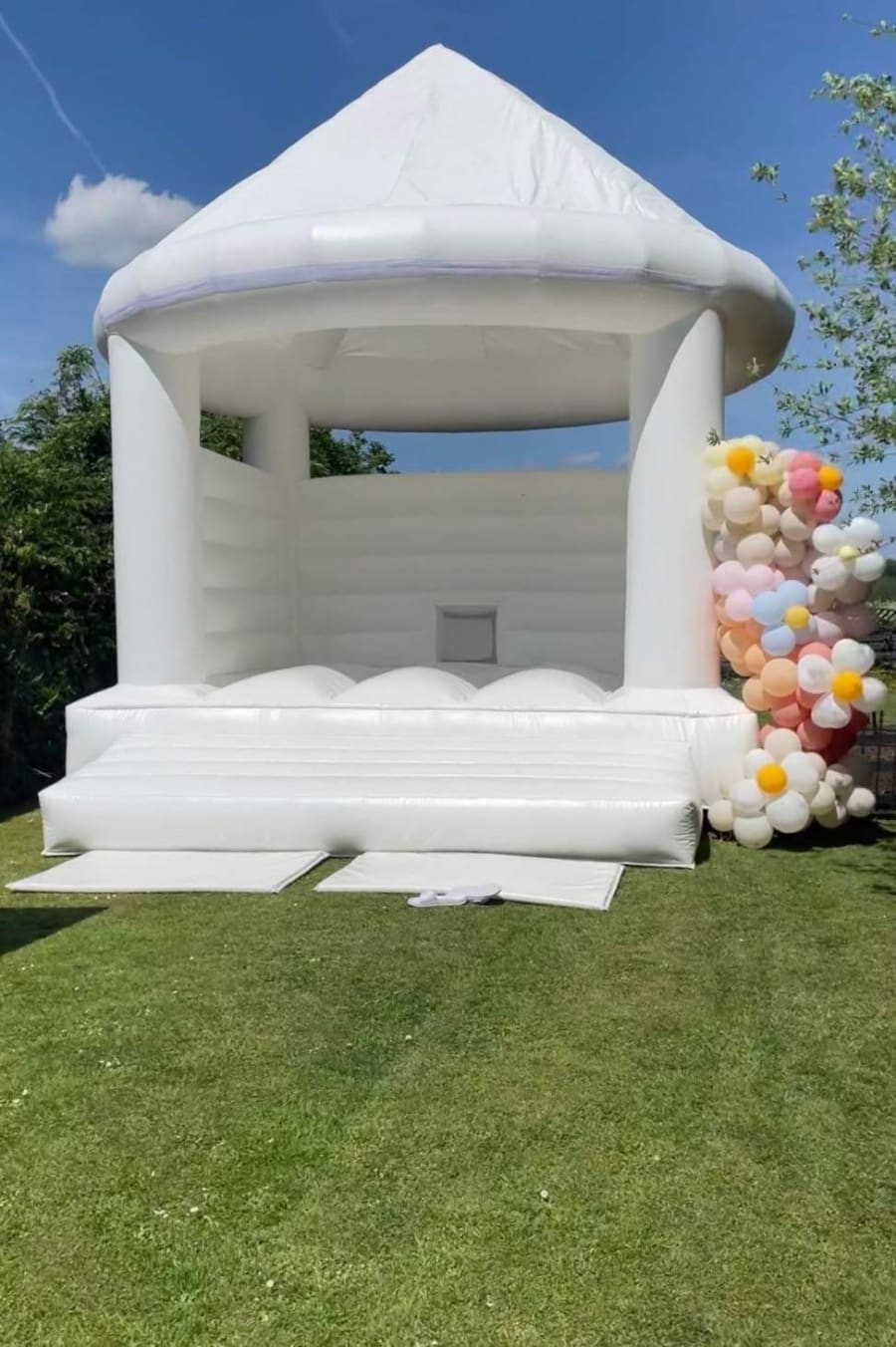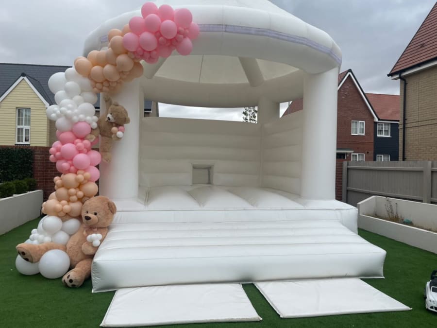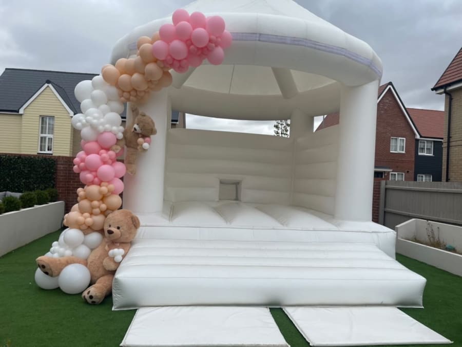 Our Stunning White bouncy Castle is most popular for weddings, christening's, and Princess parties!
